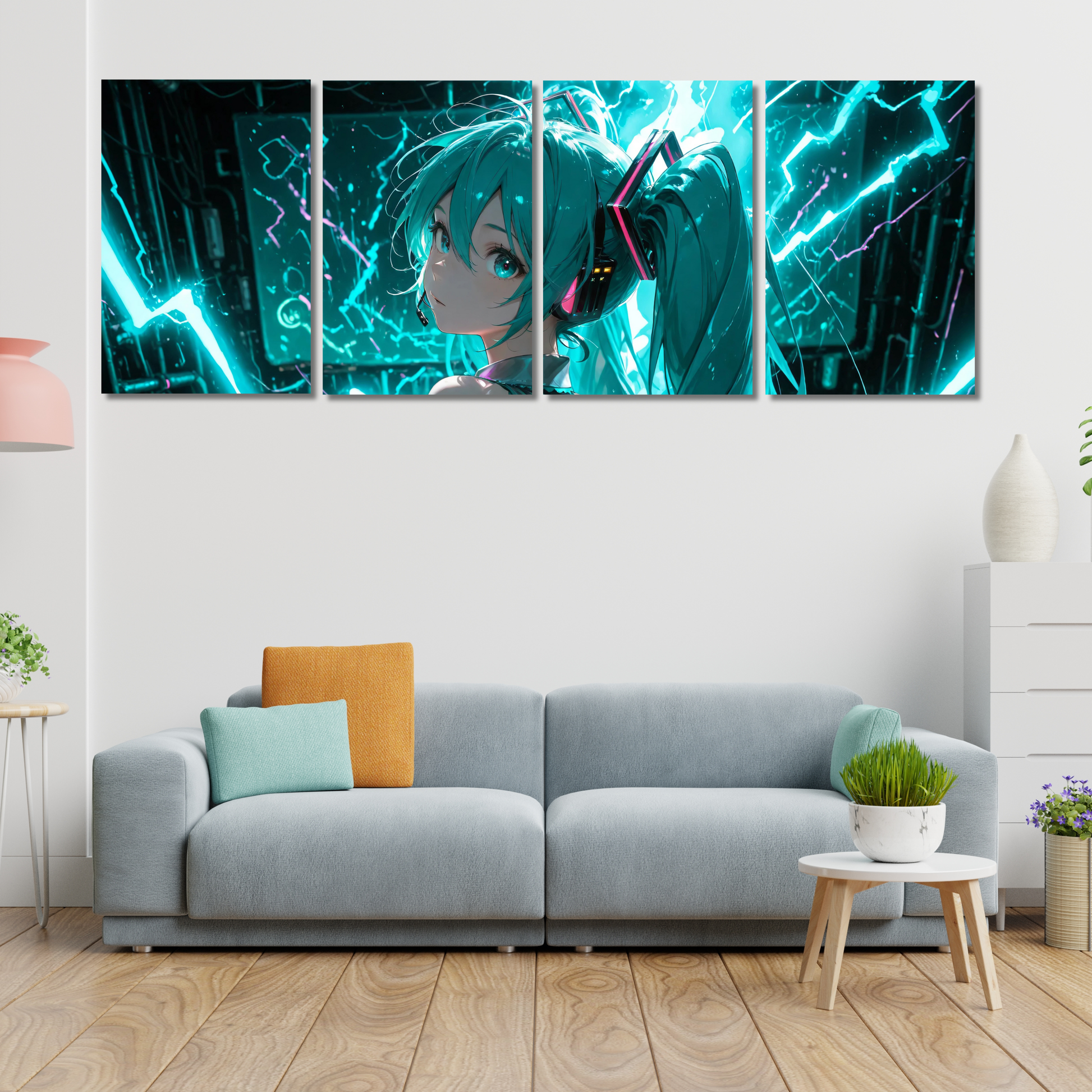 "Cyan Cyber-Pulse: Hatsune Miku Inspired Tech-Anime Canvas" - Premium Metal Poster