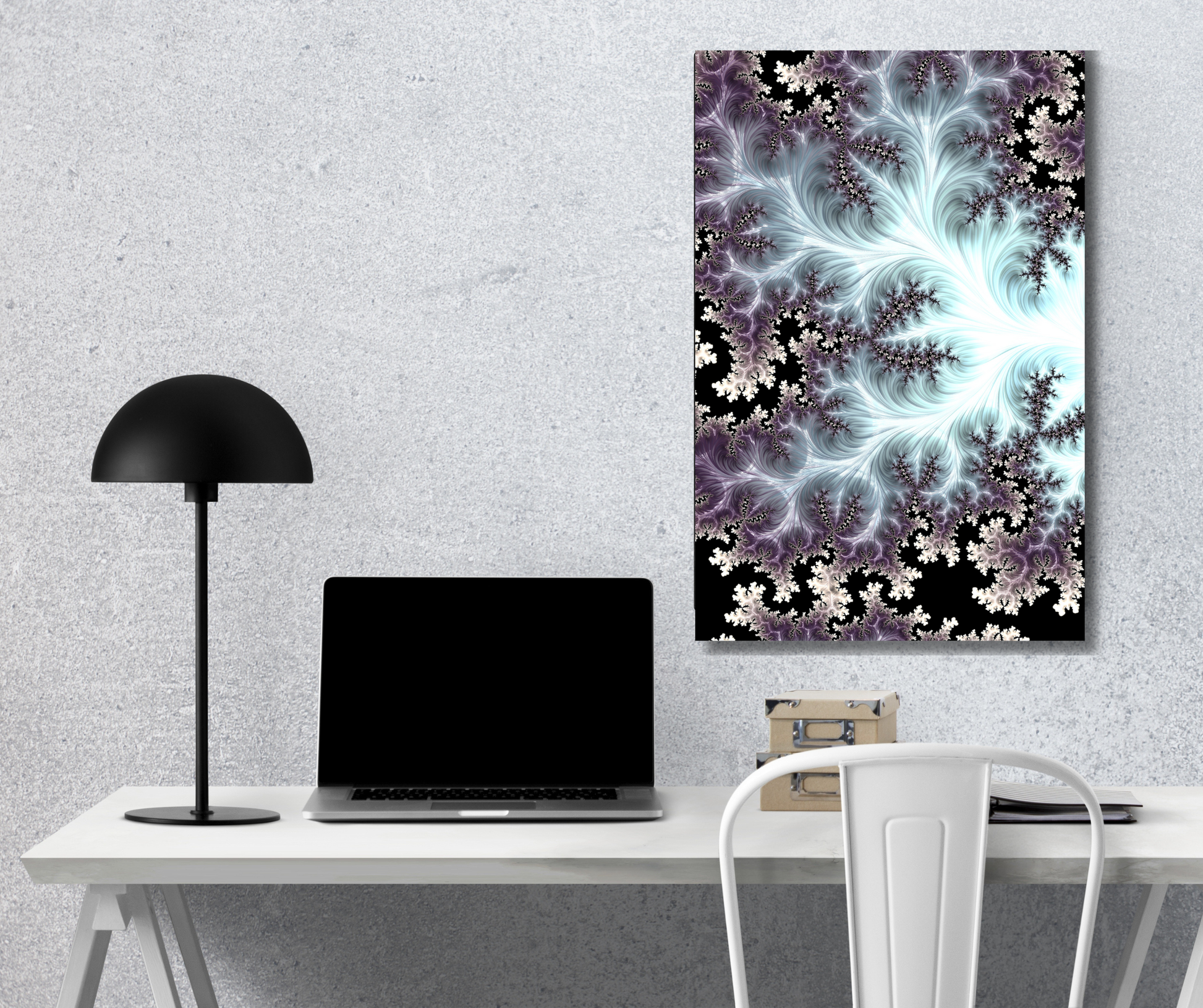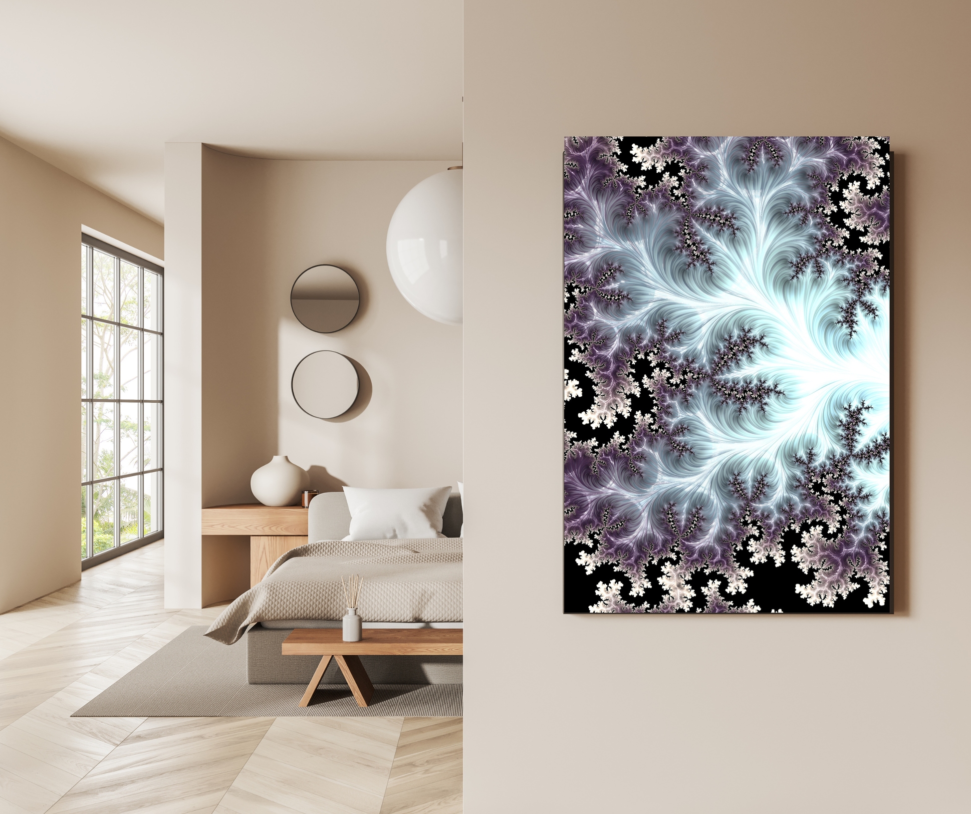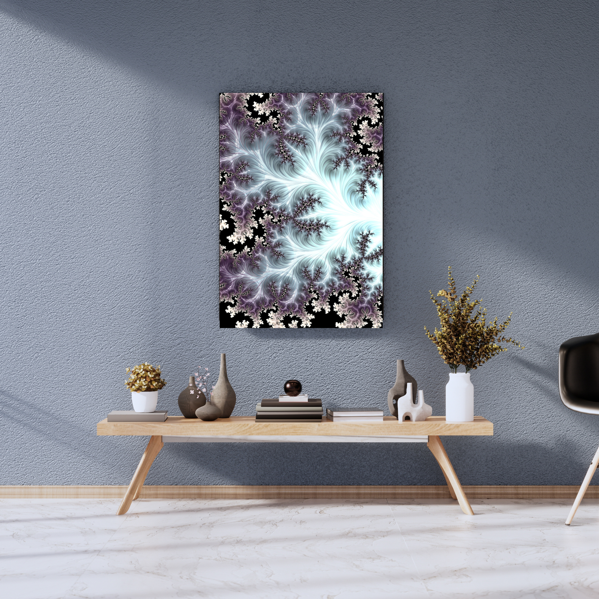 Ethereal Frost: Violet & Silver Fractal Bloom - Premium Metal Poster