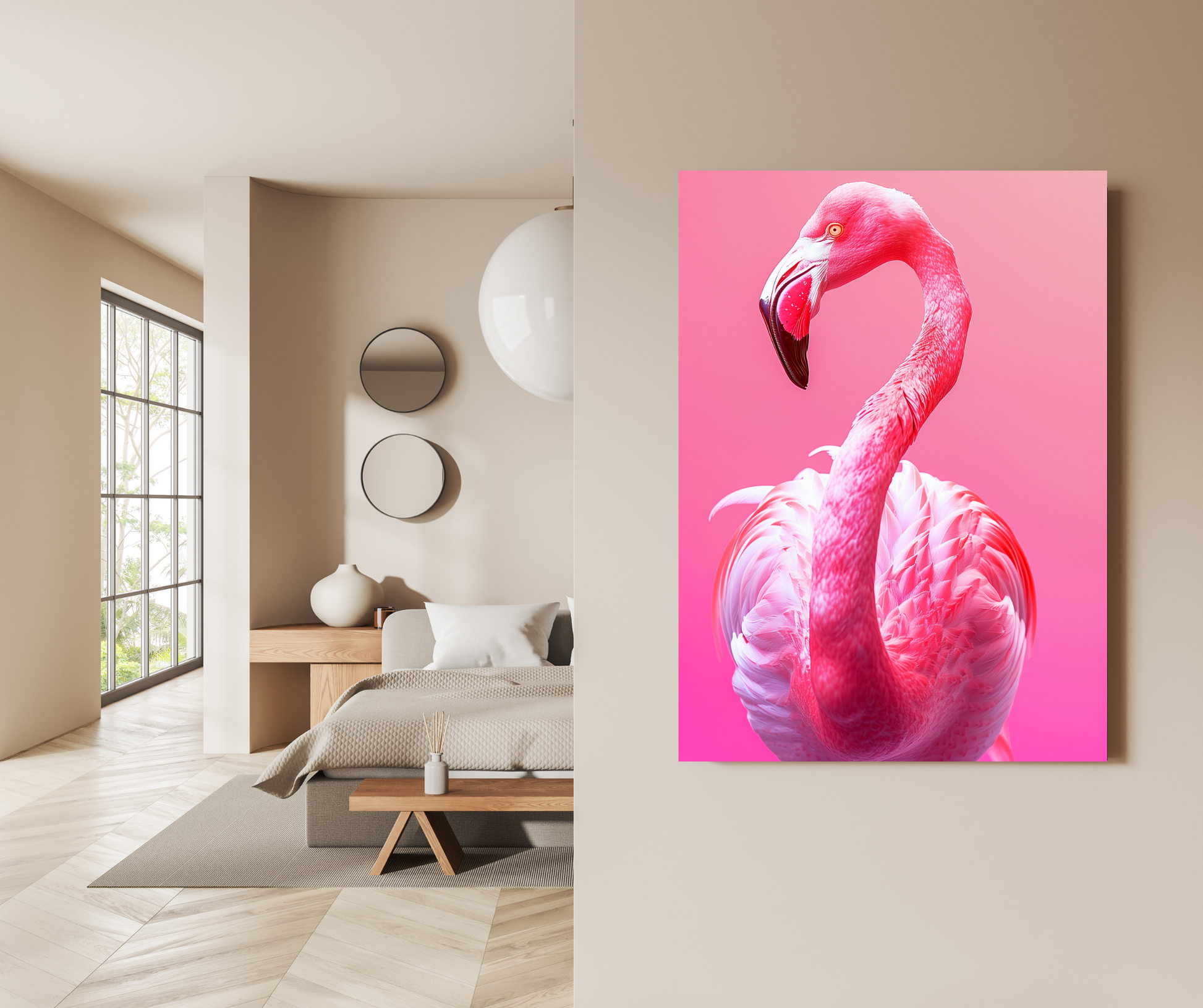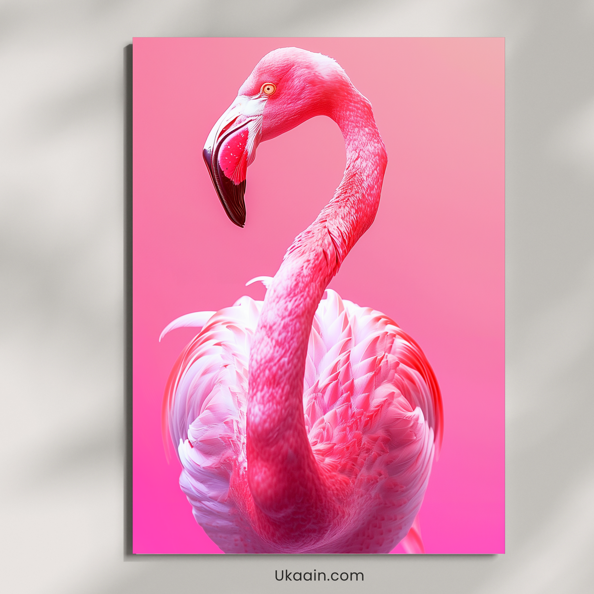 Graceful Pink Flamingo: Tropical Art - Premium Metal Poster