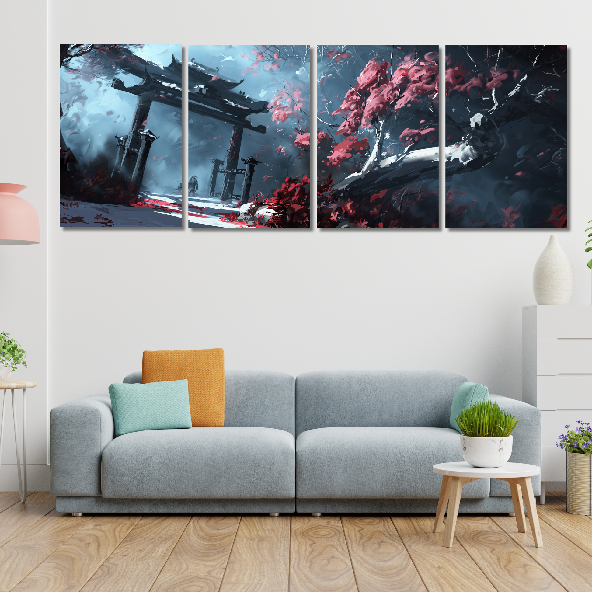 Japanese Scenery: "Zen Horizon: Sakura Gate - Premium Metal Poster
