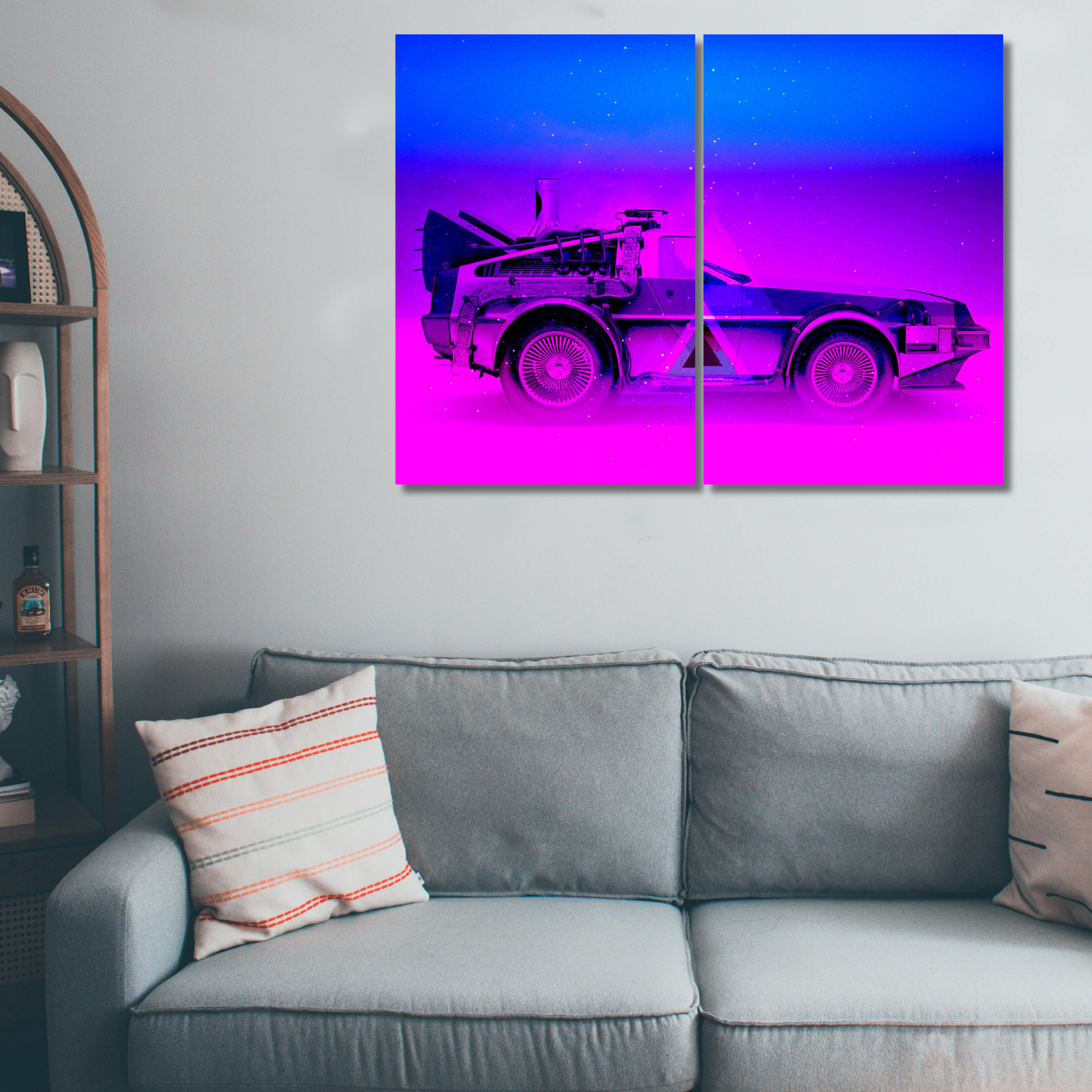 Outatime: Synthwave DeLorean Time-Machine Split - Premium Metal Poster
