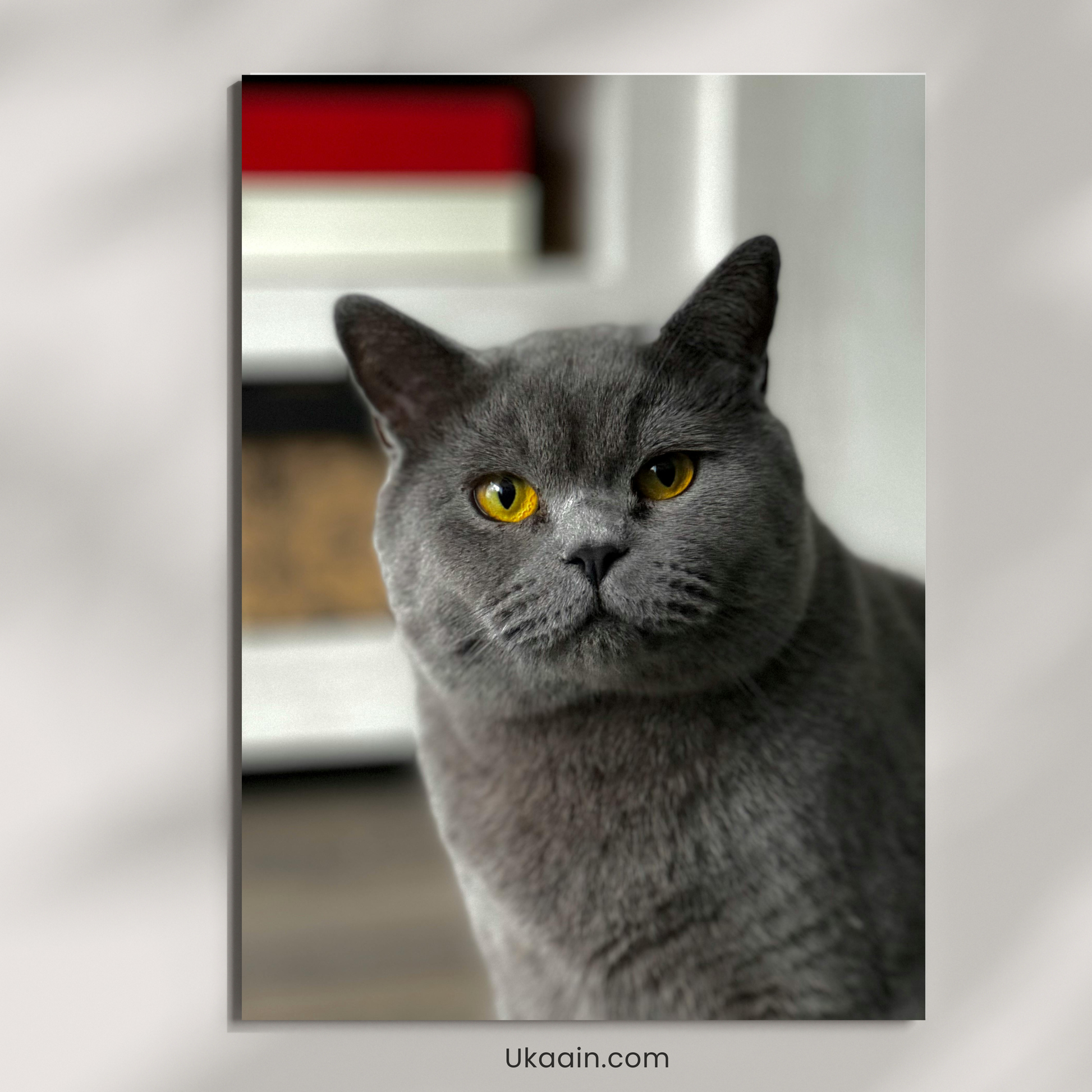 Grey Cat Portrait: Amber Gaze - Premium Metal Poster