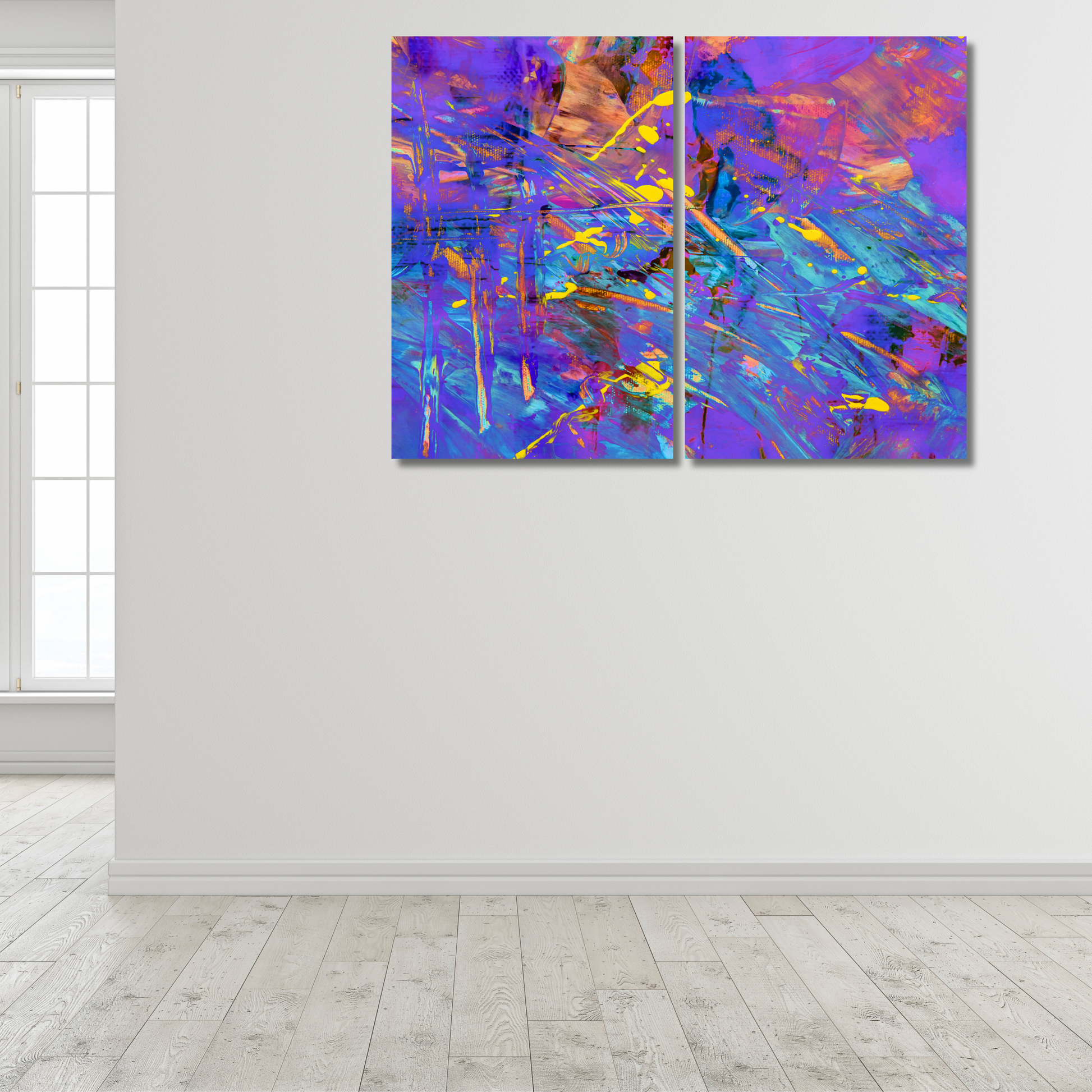Vibrant Chaos: Purple & Blue Neon Abstract Splatter - Premium Metal Poster
